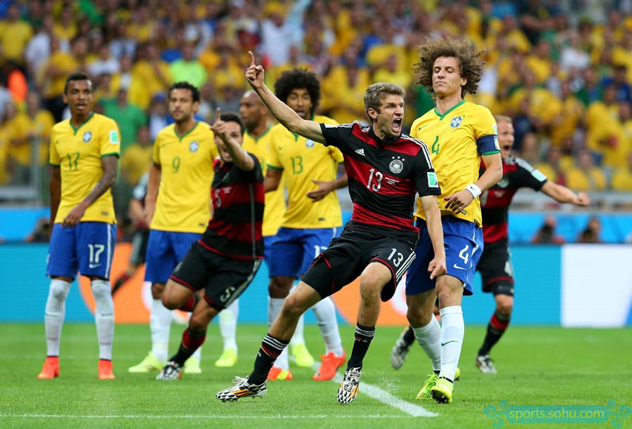北京時間7月9日凌晨4時,2014年巴西世界杯首場半決賽在貝洛奧里藏特的米內(nèi)郎體育場進行,東道主巴西迎戰(zhàn)上屆季軍德國。最終,德國隊?wèi){借在18分鐘內(nèi)連入5球的攻擊狂潮以及下半場許爾勒替補登場后的梅開二度,7-1超大比分淘汰巴西,昂首晉級決賽。第10分鐘,穆勒利用角球機會首開紀錄。第22分鐘,克洛澤門前兩連擊攻入世界杯第16球,超越羅納爾多,成為世界杯進球第一人。第24分鐘和第25分鐘,克羅斯1分鐘內(nèi)連入2球。第28分鐘,赫迪拉又接厄齊爾傳球打進一球。第68分鐘,許爾勒又接拉姆助攻,門前包抄打門得手。第79分鐘,許爾勒禁區(qū)左側(cè)小角度攻入世界波。第90分鐘,奧斯卡才攻入挽回顏面的一球。
