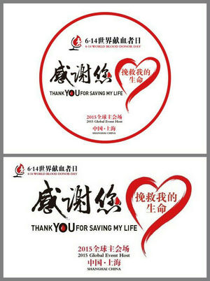 2015年6月14日是第十二個(gè)世界獻(xiàn)血者日(WBDD, World Blood Donor Day)。世界衛(wèi)生組織將今年世界獻(xiàn)血者日的主題確定為“感謝您挽救我的生命”,今年的宣傳口號(hào)是“無(wú)償獻(xiàn)血,定期獻(xiàn)血。獻(xiàn)血事關(guān)緊要?!笔澜缧l(wèi)生組織希望各國(guó)和地區(qū)向以獻(xiàn)血拯救了無(wú)數(shù)生命的獻(xiàn)血者表達(dá)衷心的感謝,并鼓勵(lì)全球有更多的人自愿、定期獻(xiàn)血。每年世界衛(wèi)生組織都要為全球的慶?;顒?dòng)指定一個(gè)主辦國(guó),今年的主辦國(guó)為中國(guó),主會(huì)場(chǎng)活動(dòng)在上海,由上海市血液中心(世界衛(wèi)生組織輸血合作中心)組織。