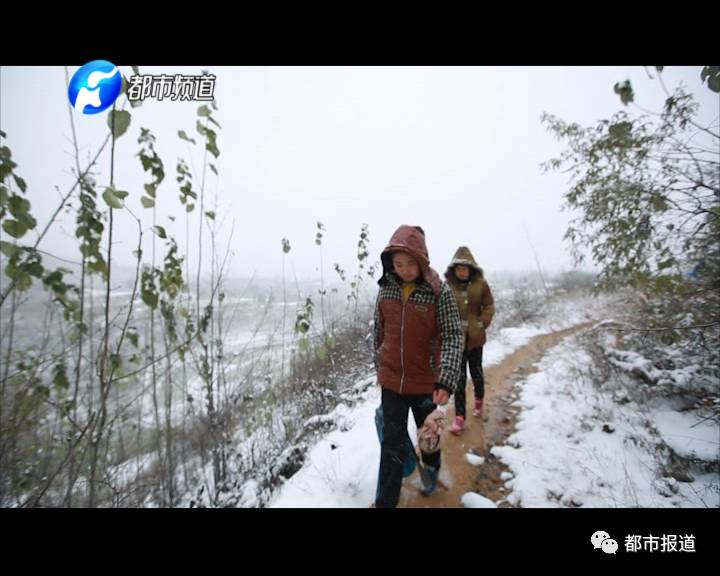 放學(xué)了,姐弟倆從學(xué)校到家要走六七公里山路,這樣下雪的天氣里,他們得比平常更小心。而此時家里的爸爸丁保平,也焦急得在家門口等待孩子們回家。