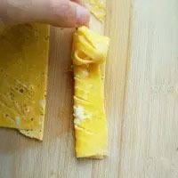 3. 把切好的蛋皮左右對折。