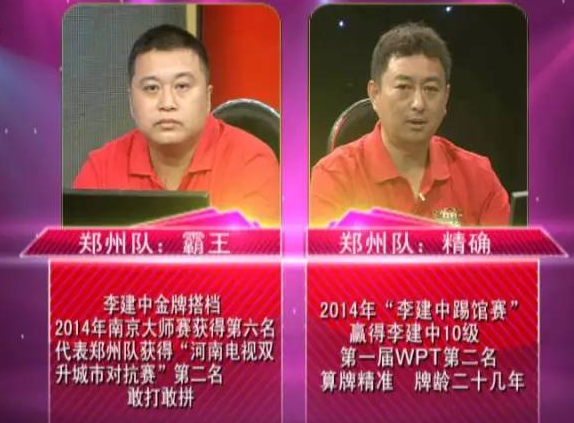 鄭州隊派出了“霸王”和“精確”。“霸王”在2015年“李建中踢館賽”期間,與李建中是金牌搭檔;在2014年南京大師賽上獲得第六名;曾代表鄭州隊獲得“河南電視雙升城市對抗賽”第二名,經?;钴S在雙升銀屏的舞臺上。
