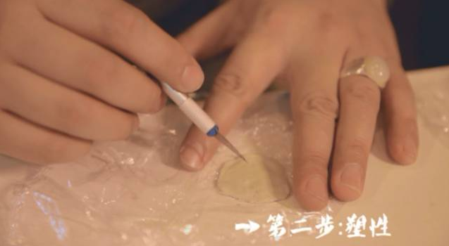 第一步需要先捏土,但全程不能用手直接觸碰,所有的銀質(zhì)黏土一點(diǎn)也不能浪費(fèi),可謂是真正的寸土寸金。今天做的是豌豆的造型,需要有三個豌豆,豌豆的制作相對簡單,想做出大牌兒一般的手作,全靠你左腦的想象和右腦的操作了。