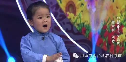 4歲的小姑娘賀尹柯傳說是和第一代銀環(huán)媽的扮演者,也是本場評委的楊華瑞老師有點撞臉,大家一定要仔細看看哦!她帶來《朝陽溝》唱段。