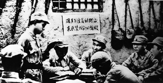 1942年,延安,戰(zhàn)士們在進(jìn)行整風(fēng)學(xué)習(xí) 本版圖片均來自中國共產(chǎn)黨新聞網(wǎng)