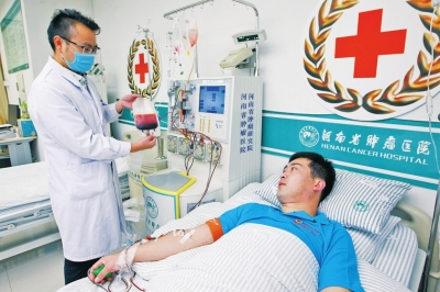 “上午8點(diǎn)半開始采集,3個(gè)小時(shí)順利結(jié)束?!弊蛱焐衔?,來(lái)自焦作沁陽(yáng)的33歲退伍兵張國(guó)強(qiáng),在河南省腫瘤醫(yī)院造血干細(xì)胞采集室成功捐獻(xiàn)造血干細(xì)胞混懸液194毫升。